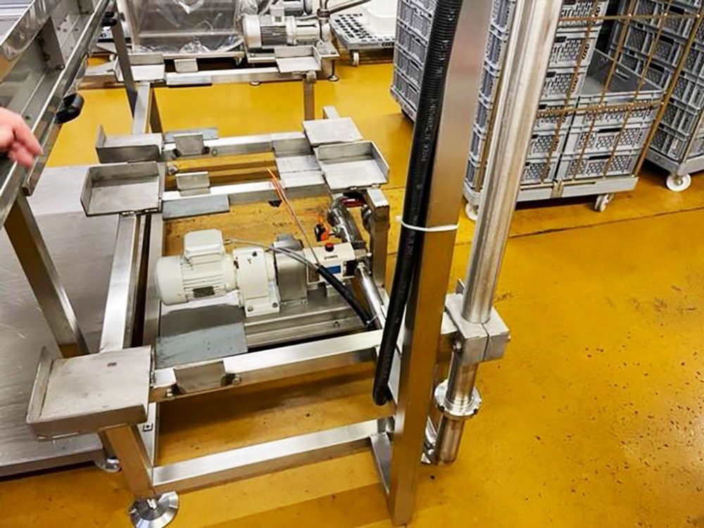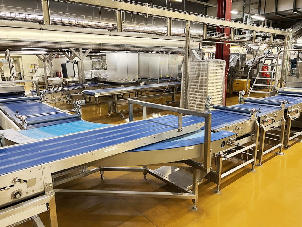 4 row swiveling spreading belt ( to put 8 rows of product into the final proofer)
