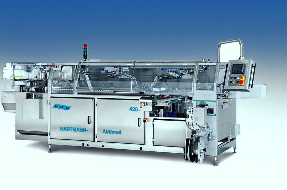Product feed line by pushers, side rails made of stainless steel with horizontal plastic plates