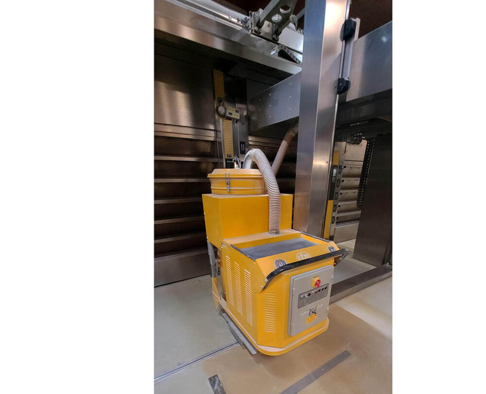 • 1 pc. Miwe Athlet oven (un)loader, (2000) with vacuum cleaner to clean the belt and oven floor