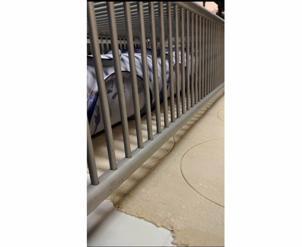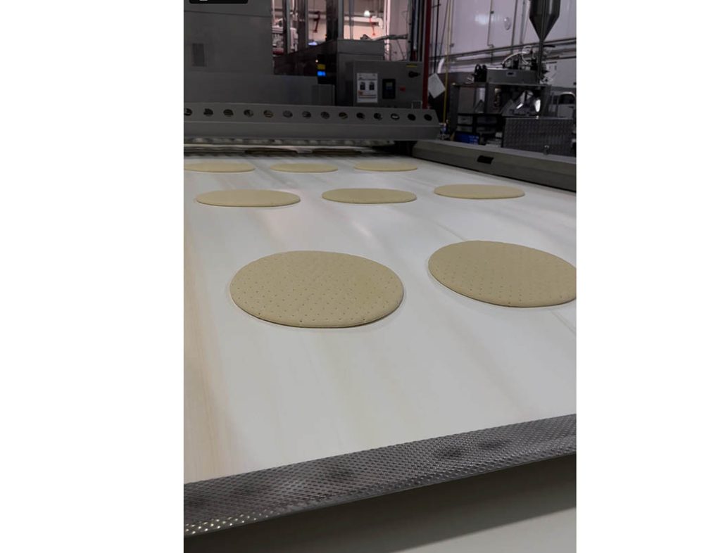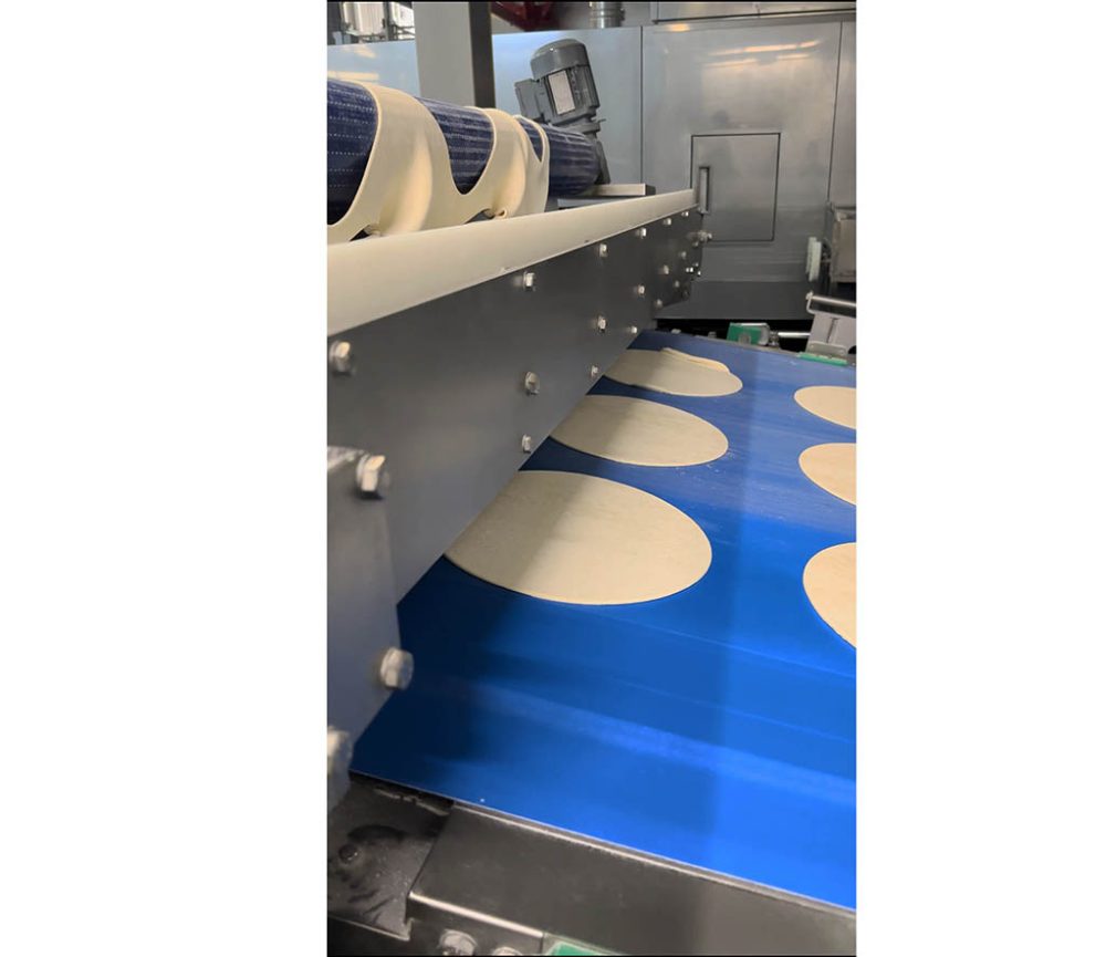 Pizza base cutting station, cutting by means of a roller, different sizes available