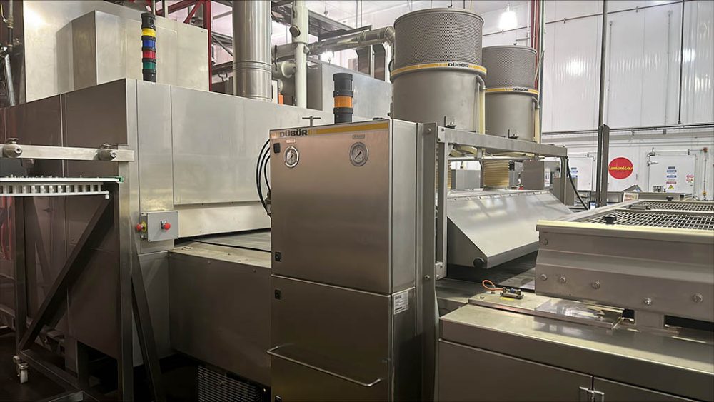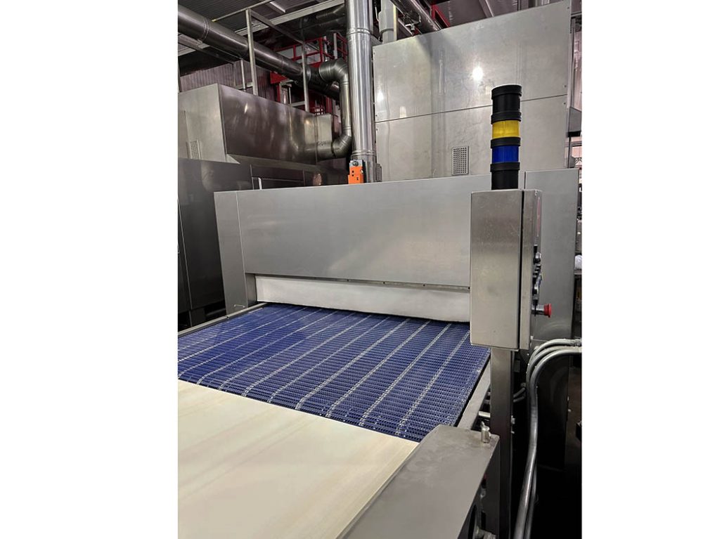 Direct fired gas oven, steel belt, baking time between 240 and 480 seconds
