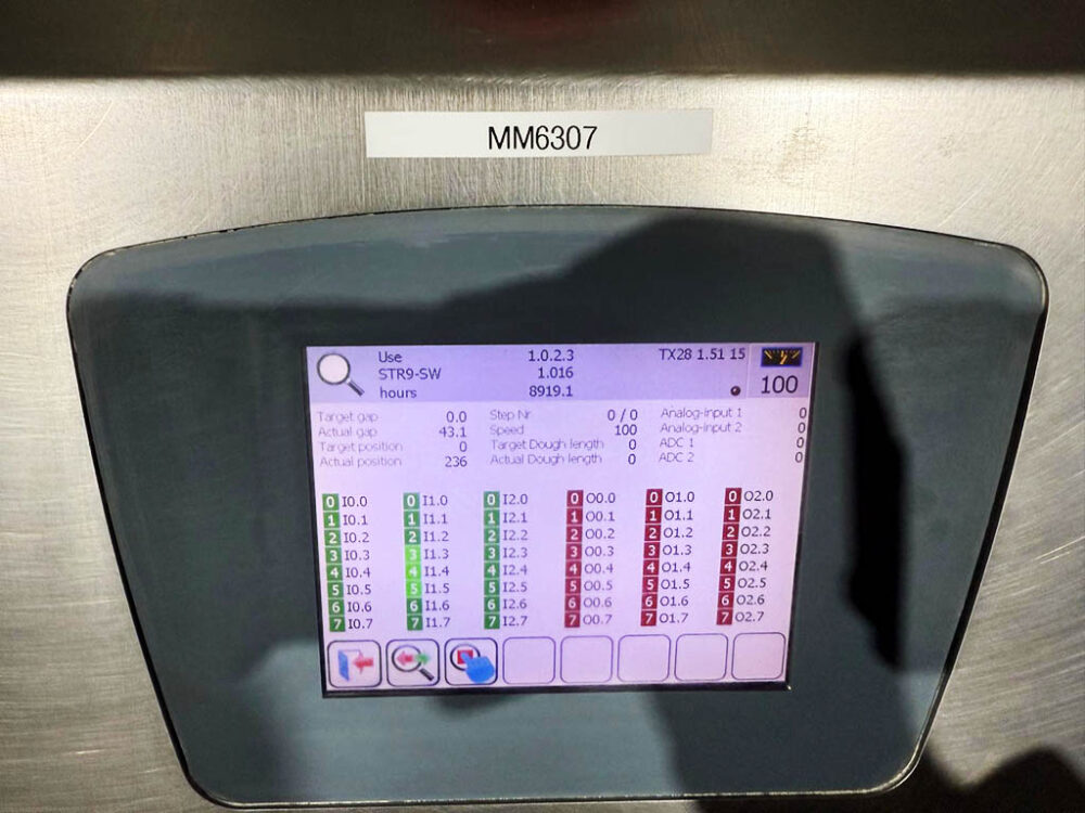 This pastry sheeter is capable of storing up to 100 different product programs to produce a wide variety of pastries.