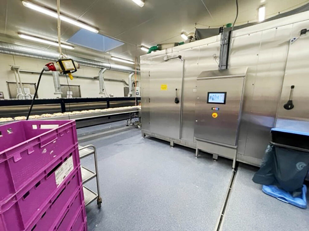 Weyrauch spiral shock freezer, refrigerant Co², infeed low, out feed high