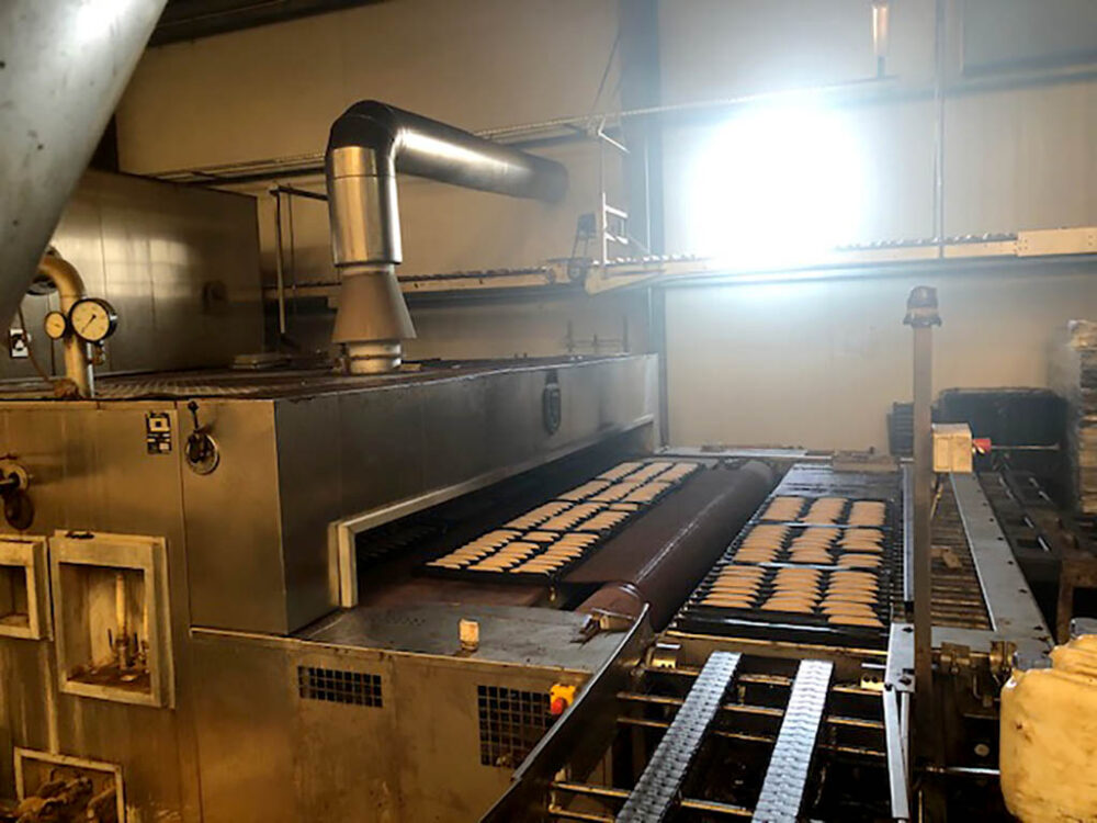 J4 tunnel oven, 16 m x 3,75m (L x w), baking time between 8 – 60 minutes, Gas heated;